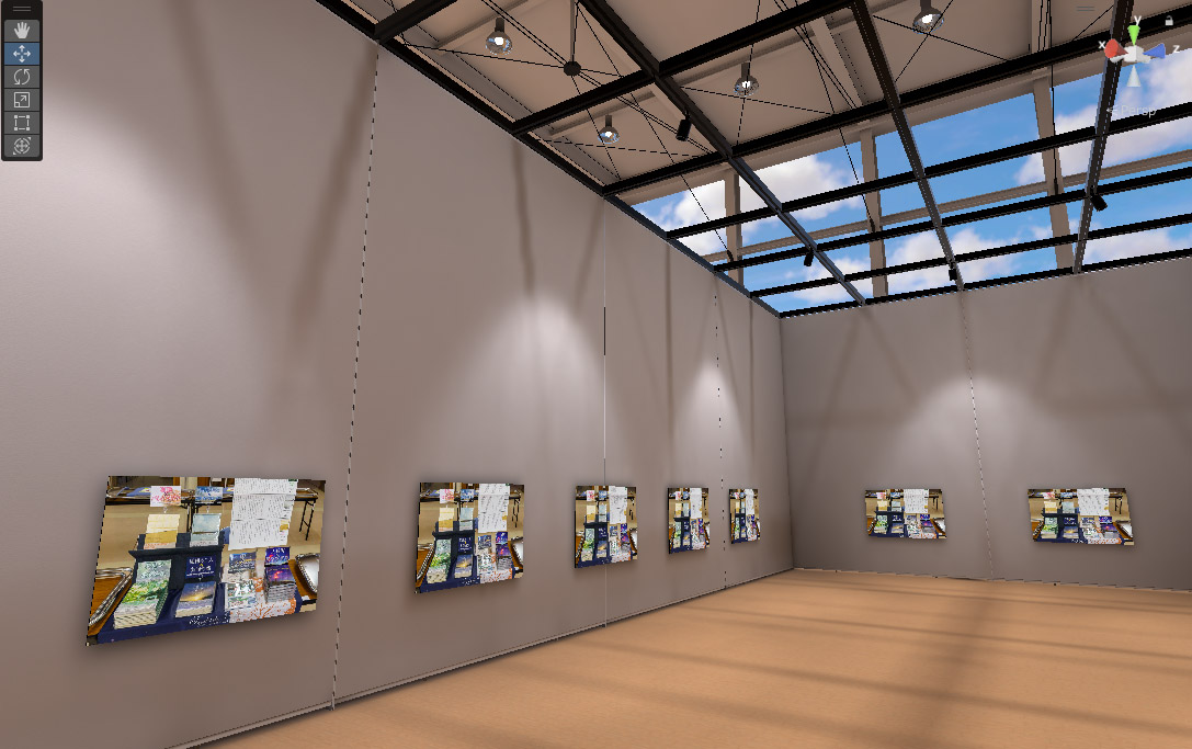 展示空間とライティングの方向性が固まって一気にそれっぽくなりました。ここから写真の埋め込みや日付の書き込みなど細かい作業が続きますが、頑張っていこうと思います。